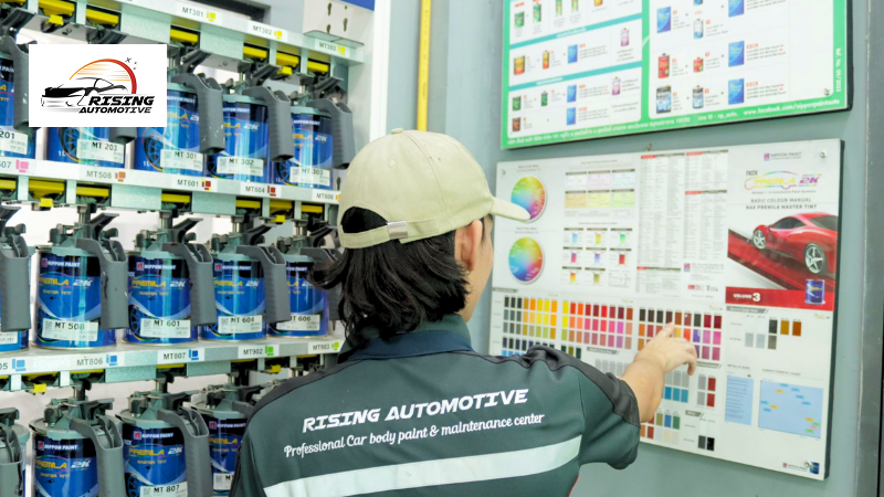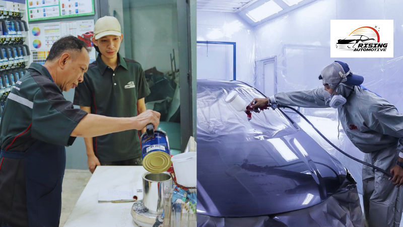 Rising Automotive มีบริการซ่อมสีรถด้วยห้องอบมาตรฐาน พ่นสีด้วยสีคุณภาพสูง พร้อมรับประกันงานซ่อมและความพอใจ